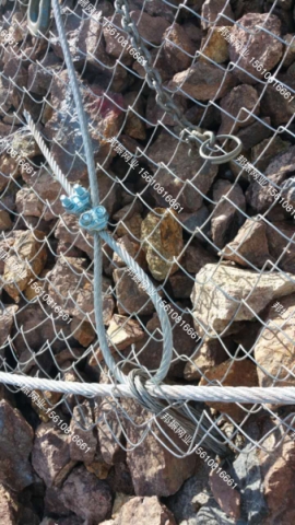 被動邊坡防護網(wǎng)折疊材質(zhì)鋼絲繩網(wǎng)、支撐繩和減壓環(huán)。折疊構(gòu)造由鋼絲繩網(wǎng)或環(huán)形網(wǎng)(需攔截小塊落石時附加一層鐵絲格柵)、固定系統(tǒng)(錨桿、攔錨繩、基座和支撐繩)、減壓環(huán)和鋼柱四個主要部分構(gòu)成。折疊產(chǎn)品特性系統(tǒng)的柔性和攔截強度足以吸收和分散傳遞預(yù)計的落石沖擊動能,消能環(huán)的設(shè)計和采用使系統(tǒng)的抗沖擊能力得到進一步提高.與剛性攔截和砌漿擋墻相比較,改變了原有施工工藝,使工期和資金得到減少。